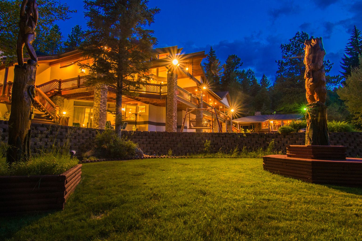 As soon as you drive onto the property it becomes clear that this is a place to explore, to find your favorite niches and to take a deep breath. Sit on the dock and teach loved ones how to catch a rainbow trout--with a shot at a ten pounder! Rest easy in the hot tub while listening to the water cascading over the nearby waterfall.